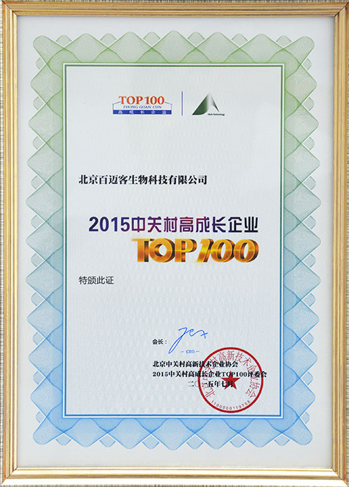 7月29日,在北 京市科委、中關(guān)村管委會、海淀園區(qū)管委會等政府主管部門的支持下,由北京中關(guān)村高新技術(shù)企業(yè)協(xié)會主辦的“2015中關(guān)村高成長企業(yè)TOP100榜單發(fā)布及頒獎典禮”在北京世紀金源大飯店隆重舉行。百邁客憑借良好的發(fā)展速度、卓越的創(chuàng)新能力和優(yōu)秀的管理水平,在北京市眾多企業(yè)中脫穎而出,榮登“2015年中 關(guān)村高成長企業(yè)TOP100”榜單。