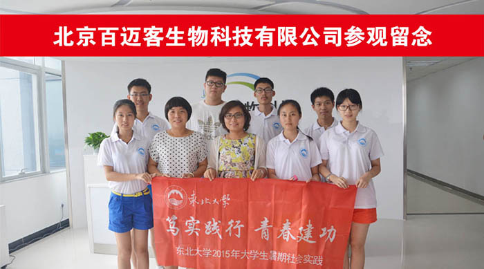 2015年8月7日下午13:30時,東北大學(xué)生物工程專業(yè)的7名大學(xué)生來到百邁客,進(jìn)行參觀交流。此次暑期參觀活動為東北大學(xué)校方支持的學(xué)生假期實(shí)踐活動之一。