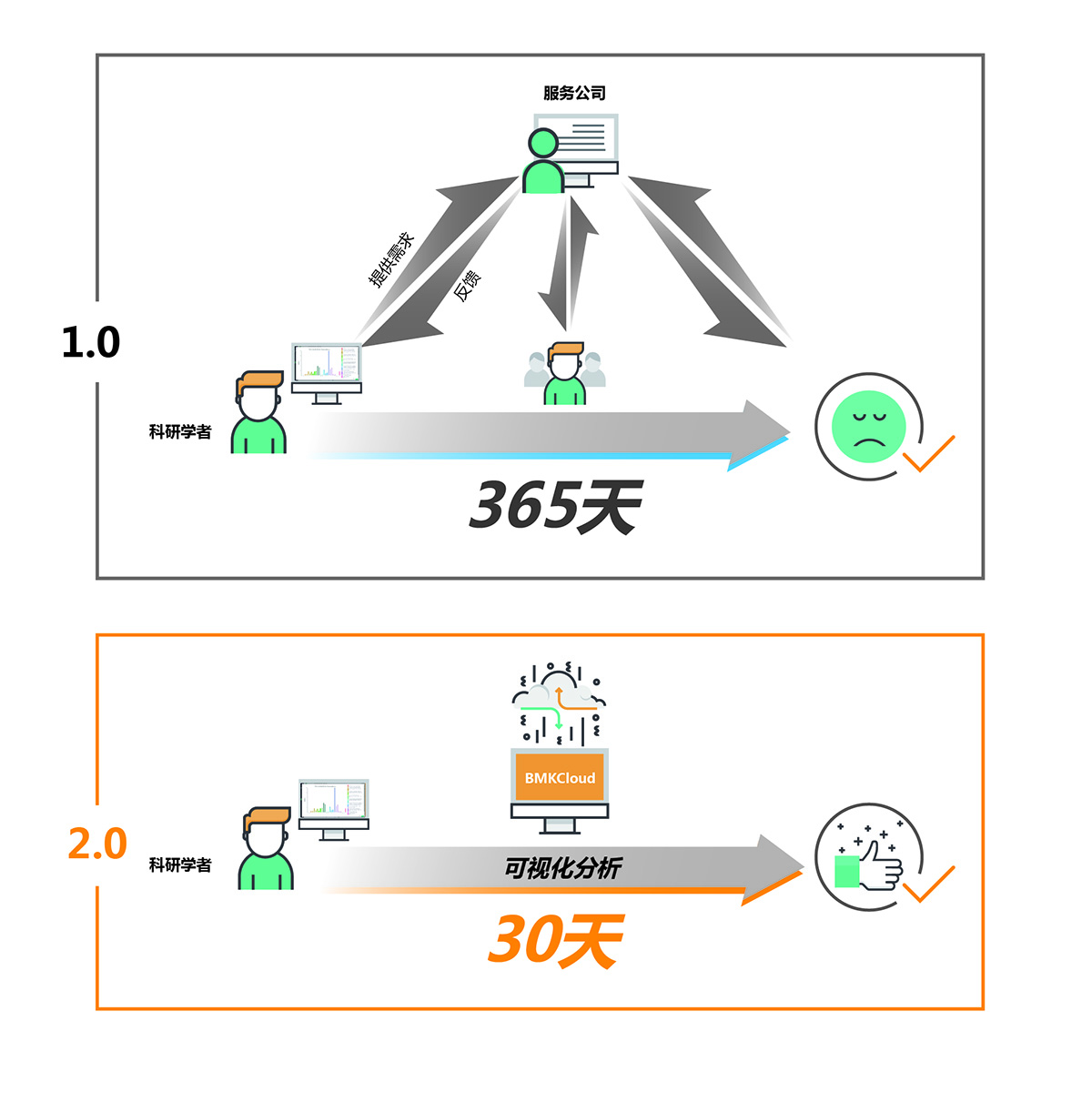 數(shù)據(jù)分析要求變高,對科技服務(wù)類公司無疑是個大的挑戰(zhàn)。首先,對科研數(shù)據(jù)的深入挖掘往往涉及到更深層次的科學(xué)問題,個性化程度極強(qiáng),這就要求生物信息人員不但要掌握生信專業(yè)知識和技能,還有有相對豐富的生物學(xué)知識,才能真正理解科學(xué)家的需求,對服務(wù)人員的要求大大提高;其次,由于科研工作本身探索的就是未知領(lǐng)域,存在相當(dāng)?shù)牟淮_定性,數(shù)據(jù)分析的結(jié)果不一定和科學(xué)家最初的科研設(shè)計一致,會導(dǎo)致科學(xué)家對服務(wù)公司的滿意度不高。因此科研工作者開始不斷的換公司進(jìn)行嘗試,隨著小公司的不斷涌現(xiàn),稂莠不齊,科技服務(wù)市場也越來越混亂。數(shù)據(jù)分析同質(zhì)化嚴(yán)重,數(shù)據(jù)深入挖掘程度不足,溝通效率低,分析成本高等開始制約科技服務(wù)行業(yè)的發(fā)展。因此必須通過變革,用一種新的更高效的模式來逐步優(yōu)化現(xiàn)有的科技服務(wù)模式。