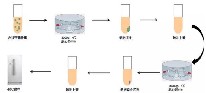 使用合適的容器收集細(xì)胞培養(yǎng)液或其他生物液體。3000g,4℃,離心15min。小心轉(zhuǎn)移上清液至新的無菌離心管中。將分離出的細(xì)胞上清液16000g,4℃,離心10min。槍頭不要觸碰到管底一側(cè)的雜質(zhì),小心轉(zhuǎn)移上清到新的無菌離心管中,-80℃保存。大體積干冰運(yùn)輸。