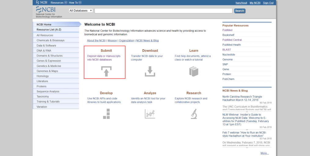 在數(shù)據(jù)上傳之前我們需要先注冊一個(gè)NCBI的賬號,這個(gè)小編就不做說明了;