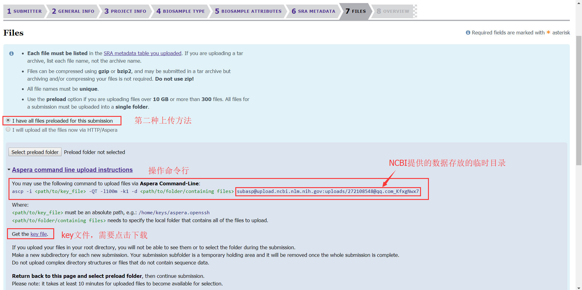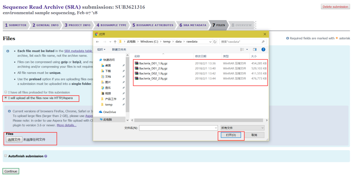 第八步:重點(diǎn)來了,這一步是將我們的數(shù)據(jù)傳到NCBI的服務(wù)器上,需要下載安裝一個(gè)軟件Aspera(http://downloads.asperasoft.com/connect2/,windows下也可以安裝)。軟件安裝完成后有兩種上傳方法:(1)可以直接上傳,適用于數(shù)據(jù)量小、樣本量小的項(xiàng)目;
