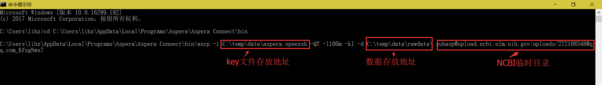 打開Windows Dos操作窗口,進(jìn)入到Aspera軟件的安裝目錄下;輸入命令