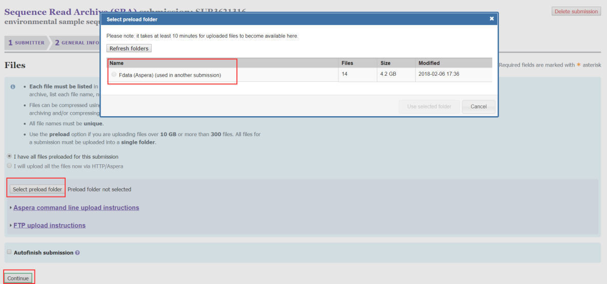 數(shù)據(jù)上傳完后,點(diǎn)擊Select preload folder就可以看到我們上傳的文件(至少需要等10分鐘后才能看到),然后選擇我們上傳的文件即可完成數(shù)據(jù)上傳。
