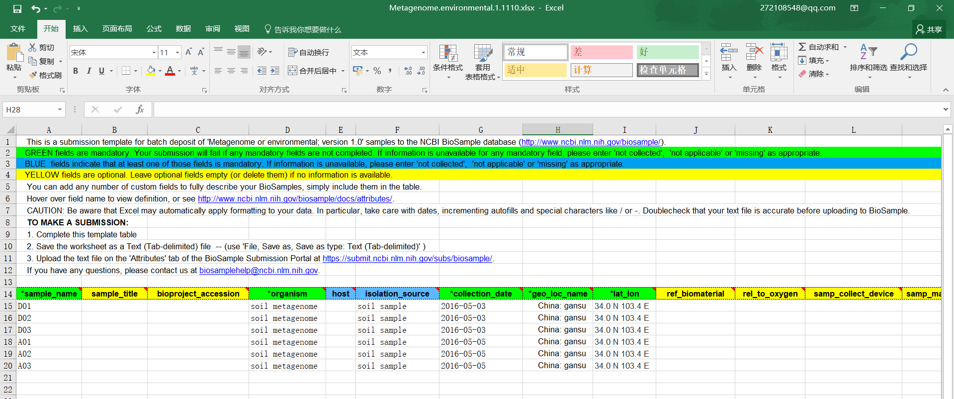 第七步:第六步表格上傳完成后,需要接著上傳Metadata表格,主要填寫樣品建庫測序的信息和需要上傳的文件名,填寫完成后也是導(dǎo)入到文本文件中然后上傳;