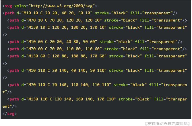 如果S命令跟在一個(gè)C命令或者另一個(gè)S命令的后面,它的第一個(gè)控制點(diǎn),就會被假設(shè)成前一個(gè)控制點(diǎn)的對稱點(diǎn)。如果S命令單獨(dú)使用,前面沒有C命令或者另一個(gè)S命令,那么它的兩個(gè)控制點(diǎn)就會被假設(shè)為同一個(gè)點(diǎn)。