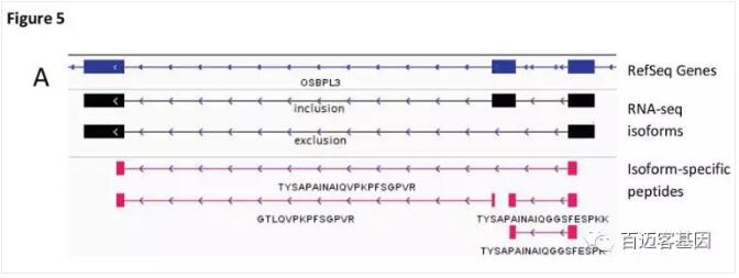 蛋白質(zhì)水平上發(fā)現(xiàn)的一些非典型的isoform翻譯成的蛋白質(zhì)可能在與常規(guī)類型的蛋白的功能不同。比如,Rac1b,相比于常見的RAC1蛋白能夠增強(qiáng)細(xì)胞存活能力。在不同的組織中,OSBPL3的isoform在RNA水平上表現(xiàn)出不同的表達(dá),表明它們可能具有不同的功能。 ?基于RNA-seq數(shù)據(jù)檢測到的少量的蛋白isoform揭示了目前蛋白質(zhì)組學(xué)的研究難點。mRNA 水平上發(fā)現(xiàn)的isoform在蛋白質(zhì)水平上沒有識別出來可能有很多原因,包括生物和技術(shù)層面。首先,并非所有的異常的isoform都被翻譯成蛋白質(zhì)。另外,轉(zhuǎn)錄和翻譯的動力學(xué)相關(guān),特別是關(guān)于siRNA介導(dǎo)的下調(diào)制。同時,isoform個數(shù)少也可能是剪接區(qū)域的翻譯后修飾的結(jié)果,例如磷酸化。還有一些技術(shù)上的問題限制了splice-specific peptides的鑒定,比如exclusion 變異。