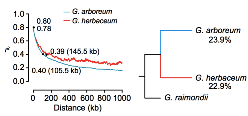 基因組測序材料:二倍體G. arboreum栽培品種cultivar Shixiya1(SXY1);