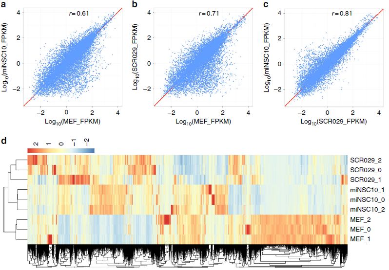 材料:35000個(gè)MEF細(xì)胞,50,000個(gè)miNSC10細(xì)胞,50,000個(gè)SCR029細(xì)胞。測(cè)序平臺(tái):Illumina HiSeq X Ten。