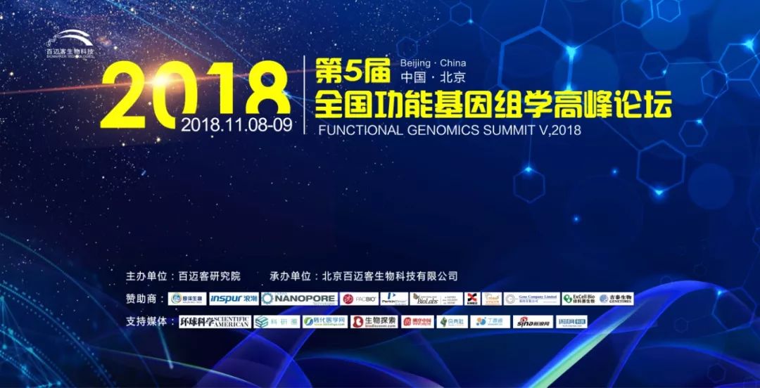 2018年11月8日,由百邁客研究院主辦、北京百邁客生物科技有限公司承辦的第五屆全國功能基因組學(xué)高峰論壇在京盛大開幕。此次峰會目的在于分享交流科研成果,開拓科研思維,加速科研成果轉(zhuǎn)化和推廣,共同促進基因領(lǐng)域的發(fā)展。