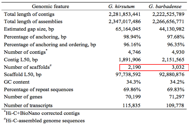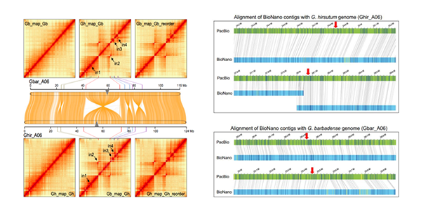 ?2018年12月4日,華中農(nóng)業(yè)大學(xué)作物遺傳改良國(guó)家重點(diǎn)實(shí)驗(yàn)室張獻(xiàn)龍課題組首次通過(guò)三代測(cè)序(PacBio)+光學(xué)圖譜(BioNano)+Hi-C技術(shù)完成了異源四倍體陸地棉(Gossypium hirsutum)和海島棉(Gossypium barbadense)基因組組裝。該研究成果刊登于Nature Genetics,文中利用北京百邁客生物科技有限公司的三代PacBio測(cè)序組裝及Hi-C染色體掛載技術(shù),組裝獲得了高質(zhì)量栽培種異源多倍體棉基因組。>>下載文獻(xiàn)全文