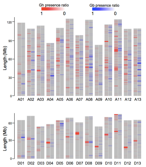 棉花是世界上*大的天然紡織纖維來(lái)源,每年纖維產(chǎn)量的90%以上來(lái)自異源四倍體棉花(G. hirsutum和G. barbadense),它起源于大約1-2百萬(wàn)年前的異源多樣化事件,隨后是數(shù)千年的不對(duì)稱亞基因組選擇。陸地棉(G. hirsutum)由于其高產(chǎn)而在全世界種植。G. barbadense以其卓越的纖維質(zhì)量而受贊譽(yù)。為了培育產(chǎn)生纖維更長(zhǎng),更細(xì)和更強(qiáng)韌的陸地棉(G. hirsutum)品種,一種合理有效的方法是將海島棉(G. barbadense)的優(yōu)良纖維性狀引入陸地棉?;蚪M學(xué)啟動(dòng)的育種策略需要對(duì)基因組組織進(jìn)行詳細(xì)而有力的理解。