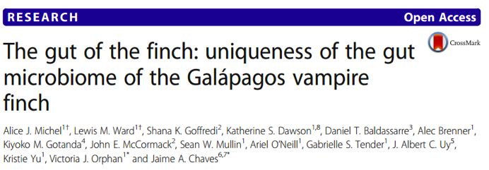 達(dá)爾文雀(Darwin’sfinches),原產(chǎn)于加拉帕戈斯群島的19種雀形目鳥(niǎo)類(lèi),由于生態(tài)地域隔離、特異喙結(jié)構(gòu)以及攝食習(xí)性(種子、蟲(chóng)子及血液)差異,導(dǎo)致他們形成了“適應(yīng)輻射”(adaptive radiation)。盡管人們對(duì)這些標(biāo)志性鳥(niǎo)類(lèi)進(jìn)行過(guò)調(diào)查,但它們的腸道菌群結(jié)構(gòu)及影響菌群結(jié)構(gòu)的因素尚未被探索。本文作者從達(dá)爾文雀的種類(lèi)差異、生態(tài)地理位置以及攝食習(xí)性3方面進(jìn)行調(diào)查,研究成果于2018年發(fā)表在國(guó)際微生物TOP期刊Microbiome,該期刊的近五年影響因子為10.9分。