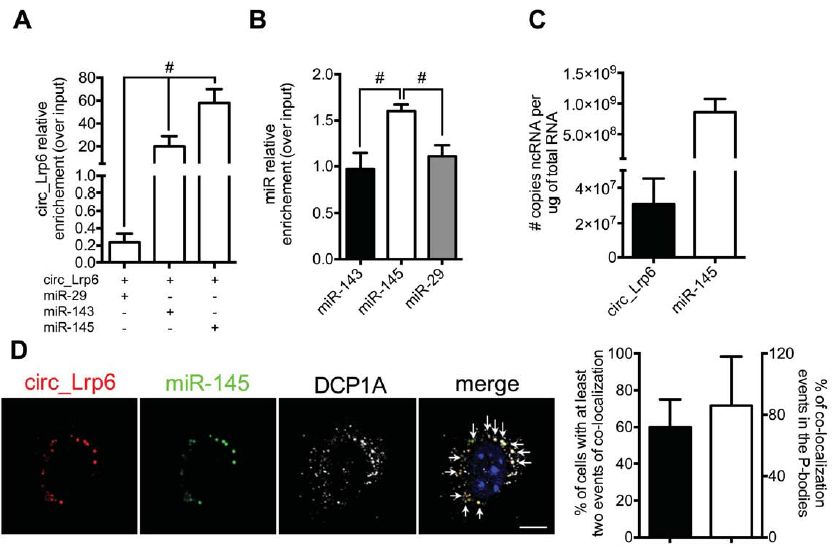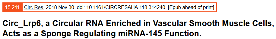 circ_Lrp6與miR-145直接結(jié)合:AGO2 IP實(shí)驗(yàn)驗(yàn)證二者與AGO2結(jié)合(circRNA與miRNA的結(jié)合由AGO2介導(dǎo));RIP實(shí)驗(yàn)驗(yàn)證二者之間直接結(jié)合;等。