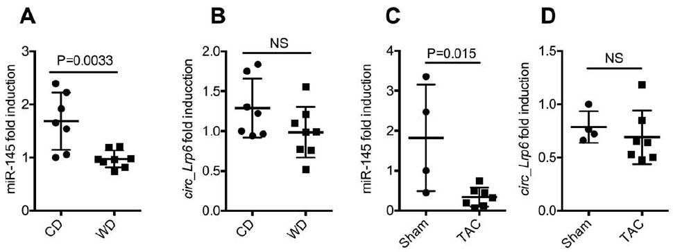 不同病理狀況circ_Lrp6和miR-145表達(dá)分析:例如動(dòng)脈粥樣硬化血管患者中,miR-145的表達(dá)顯著降低,但circ_Lrp6沒有顯著變化,在復(fù)雜的病理學(xué)中兩個(gè)ncRNA在基因表達(dá)方面解離。