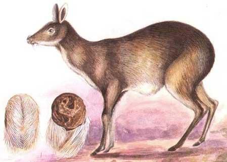 麝(shè)(Noschus noschiferus?Linnaeus),又稱為麝獐、香獐,種類少,麝的前肢短,后肢長,蹄小耳大,雌雄都無角,雄性有發(fā)達獠牙。麝棲居于山林,多在拂曉或黃昏后活動,聽覺、嗅覺均發(fā)達。雄麝臍香腺囊中的分泌物干燥后形成的香料即為麝香,是一種十分名貴的藥材,也是極名貴的香料。麝的數(shù)量急劇下降,因為人們?yōu)榱双@得麝香而不斷獵殺它們。