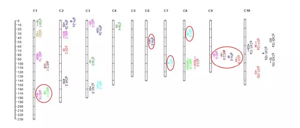 圖1、QTL定位結(jié)果