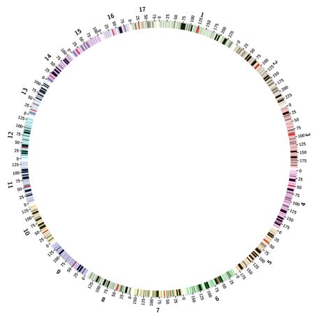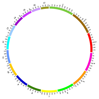 如果想自定義染色體排列順序,可以使用chromosomes_order參數(shù)來(lái)設(shè)定,假設(shè)在上圖的基礎(chǔ)上,想將hs11,hs12,hs13染色畫(huà)在前面,可以設(shè)置chromosomes_order=hs11;hs12;hs13;hs1;hs2;hs3;hs4;hs5;hs6;hs7;hs8;hs9;hs10;hs14;hs15;hs16;hs17;畫(huà)出的圖如下: