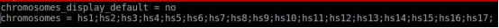 Circos軟件默認(rèn)畫(huà)出所有染色體的信息,如果我們想只展示其中的某些染色體,可以在circos.conf的添加下圖中的兩個(gè)參數(shù):