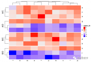 mat?=?rbind(mat,?matrix(rnorm(40,?-2),?4,?10))????#產生一個4行10列共40個平均值是-2的矩陣并與8行10列的矩陣合并成一個12行10列的矩陣