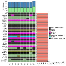 5)熱圖助力可視化腫瘤外顯子高頻突變基因的突變類型分布展示