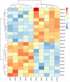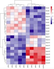 pheatmap是R語言中一個(gè)使用非常廣泛的用于繪制聚類熱圖的繪圖包。使用這個(gè)繪圖包可以幫助我們快速的生成包含聚類結(jié)果的熱圖。