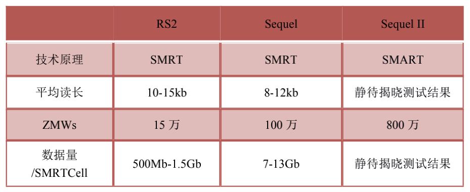 PB平臺(tái):RSII和Sequel系列儀器,目前Sequel系列平臺(tái)測序通量高、單Gb數(shù)據(jù)成本低、周期短的特點(diǎn)已將RSII平臺(tái)取代。