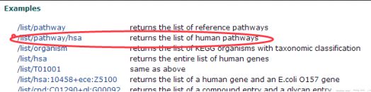 https://www.kegg.jp/kegg/rest/keggapi.html#list,點(diǎn)擊如圖所示鏈接得到KEGG所有人類通路的列表,截至20190418,收錄了330條通路。