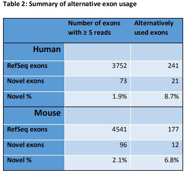 兩個高豐度circRNA:Hipk3和Zfp609(具有可變3’剪接位點的新型外顯子)的外顯子分布圖分別顯示在下圖: