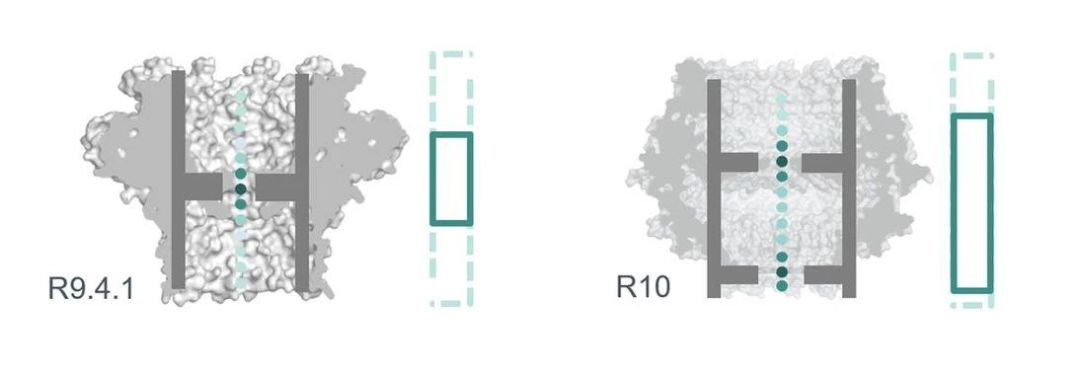 近年來,由于三代測序相較于二代測序,擁有單分子無需擴(kuò)增,長度長等優(yōu)勢,因此在各組學(xué)研究中大放異彩。而作為三代測序的代表技術(shù)之一,Nanopore平臺因能獲得更長讀長,在基因組學(xué)研究中更是備受青睞。但相較于二代平臺,三代平臺測序數(shù)據(jù)的準(zhǔn)確性一直是比較大的劣勢。本次Oxford Nanopore Technologies公司即將推出的R10芯片,則劍指準(zhǔn)確性。相較于當(dāng)前廣泛使用的R9.4.1芯片,新型R10芯片可提供相當(dāng)?shù)淖x長,產(chǎn)量及更準(zhǔn)確的數(shù)據(jù)。