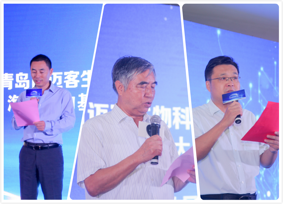 隨后,北京百邁客生物科技有限公司總裁兼CEO鄭洪坤先生、青島保稅區(qū)管委會投資促進中心主任常飛先生、中國科學院海洋研究所相建海研究員、中國海洋大學食品科學與工程學院薛長湖院長、山東大學海洋生物技術研究中心張玉忠主任上臺為青島百邁客生物科技有限公司進行剪彩。