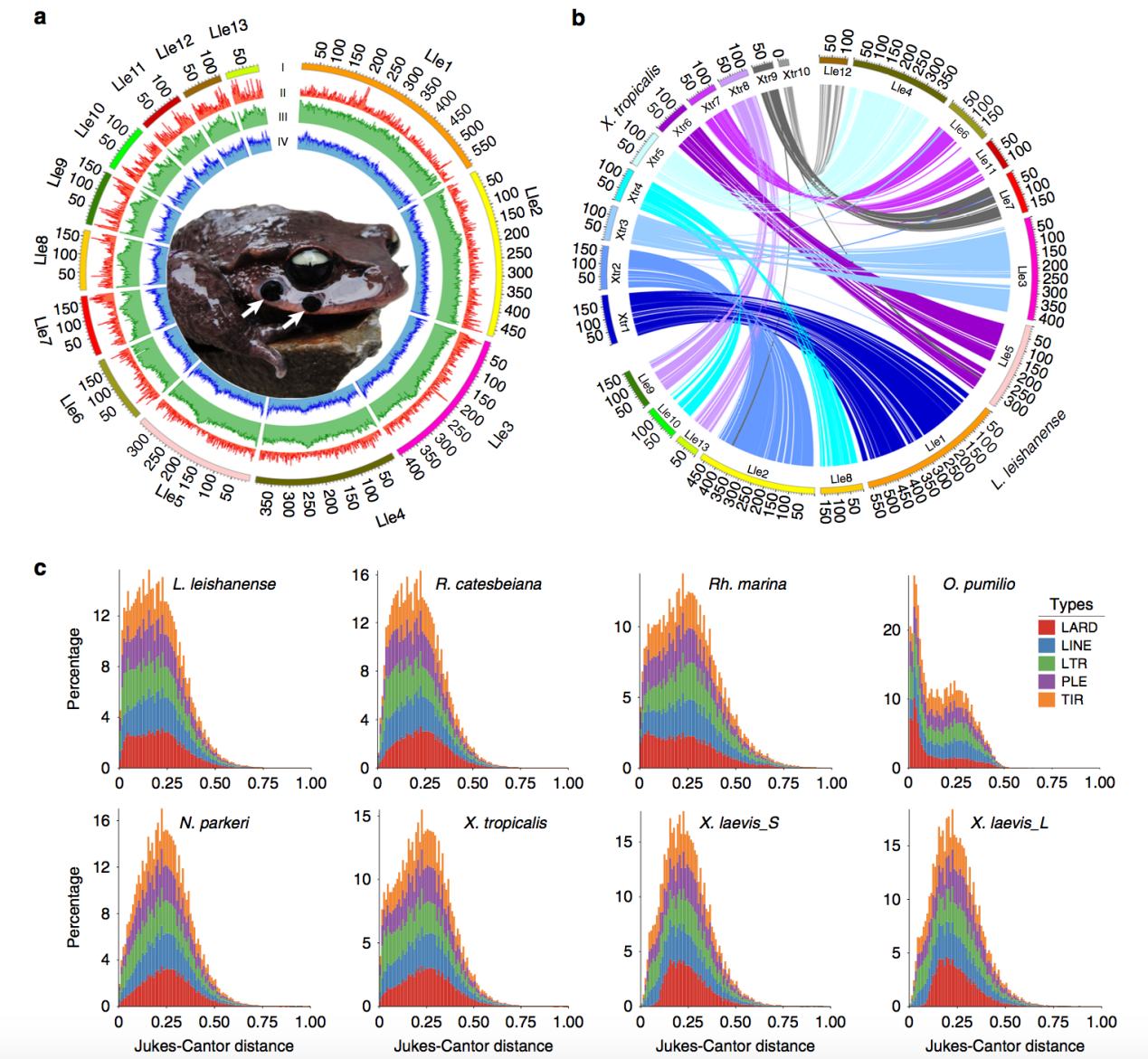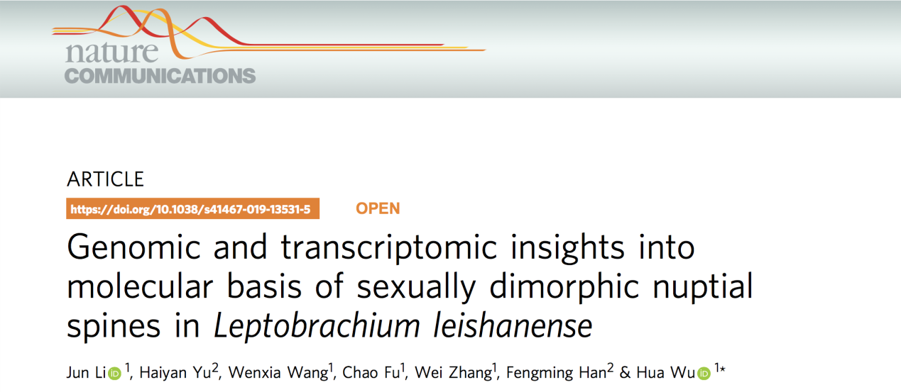 2019年12月5日,國際知名期刊Nature Communications (《自然·通訊》)在線發(fā)表了由華中師范大學(xué)與北京百邁客生物科技有限公司共同合作文章“Genomic and transcriptomic insights into molecular basis of sexually dimorphic nuptial spines in Leptobrachium leishanense”。華中師范大學(xué)生科院吳華教授為本文通訊作者,華中師范大學(xué)生科院李軍博士為論文的第一作者,百邁客生物科技作為第二單位共同參與研究。本研究借助二代、三代PacBio和HiC技術(shù)組裝了我國特有物種雷山髭蟾(Leptobrachium Leishanense)高質(zhì)量基因組,通過比較基因組學(xué)分析及雌雄個體不同發(fā)育時(shí)期的有參轉(zhuǎn)錄組分析鑒定了一系列與角質(zhì)刺性二態(tài)發(fā)育相關(guān)的生物學(xué)通路和關(guān)鍵基因。研究成果首次較全面地解析了兩棲動物性二態(tài)形成相關(guān)的重要生物學(xué)通路以及關(guān)鍵基因,彌補(bǔ)了相關(guān)研究的不足。該成果不僅為兩棲動物基因組數(shù)據(jù)庫提供了高質(zhì)量的參考基因組,而且對于深入理解脊椎動物性二態(tài)形成及調(diào)控的分子機(jī)制具有重要意義。