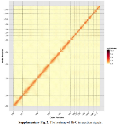 圖5 HiC互作信號鑒定雷山髭蟾染色體倒位
