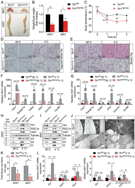 Fig2 Tfr1基因缺失可減少冷誘導(dǎo)的脂肪組織產(chǎn)熱