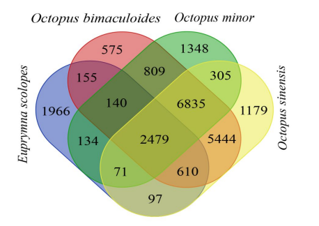 表2 中國真蛸基因組與已發(fā)表的頭足類基因組比較
