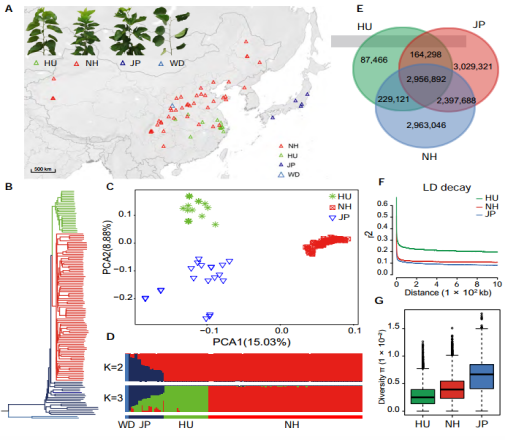 群體進(jìn)化研究:群體材料選擇(重測(cè)序:~15.6X):134份桑樹種質(zhì)(132份栽培種,來自中國(guó)和日本;2份野生種,來自中國(guó)陜西);