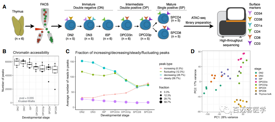 1、全基因組染色質可及性在T細胞發(fā)育過程中逐漸發(fā)生變化