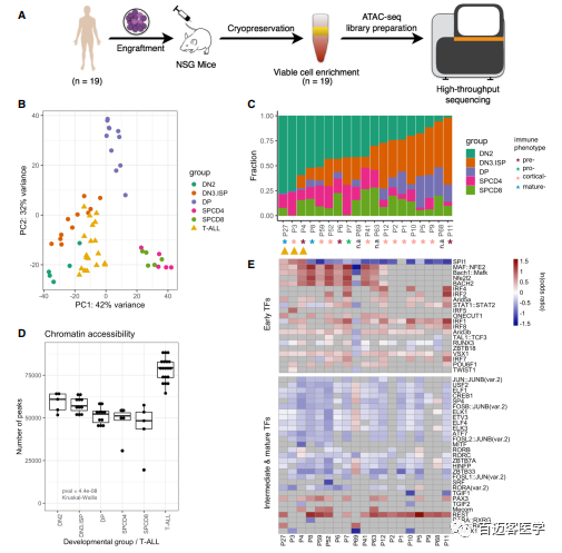 圖4 T-ALL染色質可及性概況與正常人T細胞發(fā)育的不成熟階段最相似