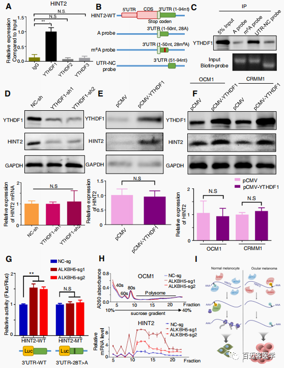 Fig3 YTHDF1 促進(jìn) HINT2翻譯