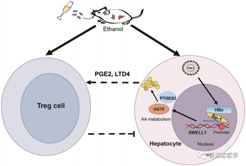 案例五:慢性酒精攝入和HBV通過HBx-SWELL1- 花生四烯酸信號傳導誘導脂質(zhì)代謝異常并激活HBV-Tg小鼠Treg細胞