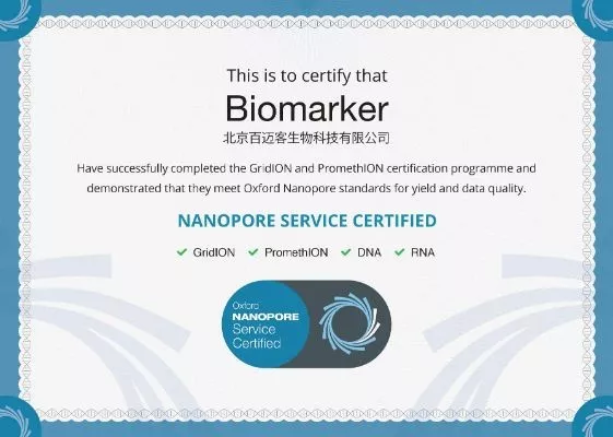 百邁客自2018年8月與牛津納米孔公司達(dá)成長(zhǎng)期合作,擁有MinION、GridION X5和PromethION三種型號(hào)全套納米孔測(cè)序儀。更是中國(guó)大陸全部通過(guò)PromthION/GridION平臺(tái)及DNA/RNA產(chǎn)品官方認(rèn)證的公司。