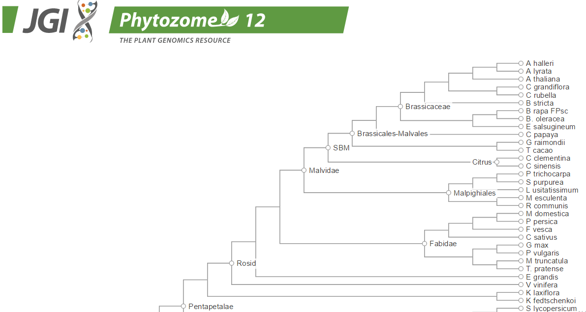 Phyzome(https://phytozome.jgi.doe.gov/pz/portal.html)。