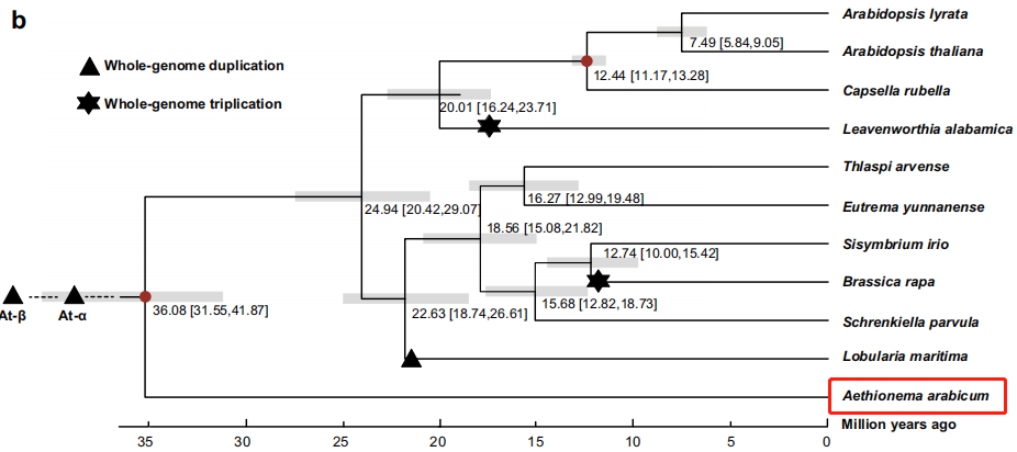 香雪球基因組進(jìn)化樹