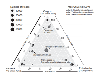 通過對(duì)在威斯康星州柳枝稷的三個(gè)生產(chǎn)地點(diǎn)AMF的研究,發(fā)現(xiàn)施氮量對(duì)柳枝稷AMF的組成和多樣性沒有一致的影響。此外,本研究中闡明的ASV在理論上代表了柳枝稷土壤中存在的√確、活的基因型。在對(duì)AMF物種劃分和種內(nèi)功能多樣性缺乏分類共識(shí)的情況下,ASVs可作為一致的序列標(biāo)識(shí),為未來尋求AMF功能和生物地理學(xué)的研究以及區(qū)域適應(yīng)AMF接種的生物勘探提供參考。