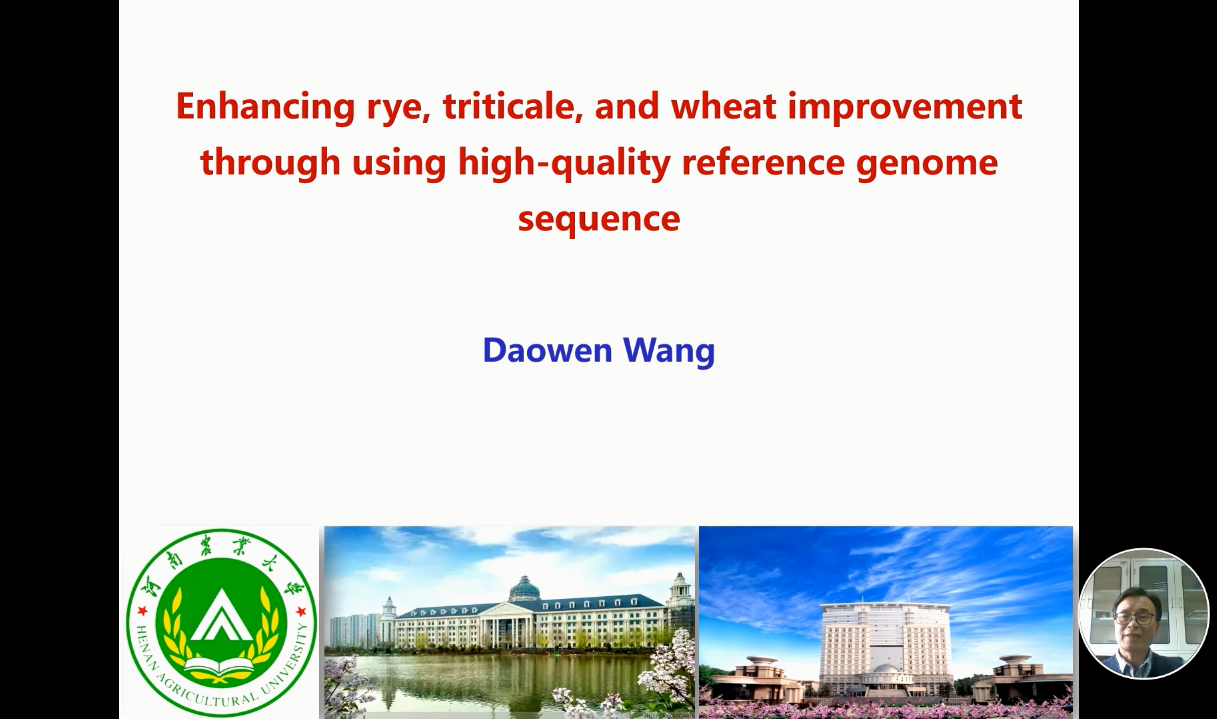 河南農(nóng)業(yè)大學(xué)王道文研究員詳述了黑麥具有較大的基因組特征(~7 – 8 Gb),其抗寒、抗病、抗逆和耐旱等多種優(yōu)良的特性對(duì)谷物研究和生產(chǎn)帶來(lái)了巨大貢獻(xiàn)。并對(duì)黑麥染色體的進(jìn)化,特別是與水稻、小麥、大麥的染色體的結(jié)合進(jìn)行了闡述。介紹了中國(guó)黑麥細(xì)胞遺傳學(xué)和育種研究相關(guān)進(jìn)程與成果。表示黑麥泛基因組研究將擴(kuò)大對(duì)黑麥基因組多樣性的了解,促進(jìn)黑麥、小黑麥和小麥的更有效改良。最后王道文研究員表示基因組學(xué)知識(shí)和基因組學(xué)工具正在給作物改良帶來(lái)新一輪的綠色革命。