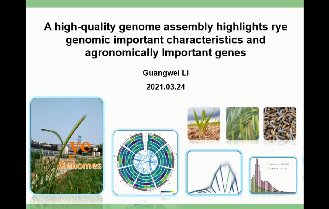 河南農(nóng)業(yè)大學(xué)李廣偉博士系統(tǒng)解析了黑麥的演化歷史,展示了黑麥的分類起源和世界遺傳資源分布,并表示黑麥作為全球麥類基因資源具有重要的研究意義。通過(guò)中國(guó)栽培種“威寧黑麥”基因組的高質(zhì)量精細(xì)物理圖譜的構(gòu)建,展示了其復(fù)雜的基因組特征、復(fù)雜的染色體變異以及淀粉合成、儲(chǔ)存蛋白、抽穗期及馴化等相關(guān)基因的詳細(xì)機(jī)制。最后李廣偉博士表示威寧黑麥基因組的破譯對(duì)深化比較谷類基因組研究,加速黑麥及相關(guān)谷類作物的遺傳改良具有重要價(jià)值。