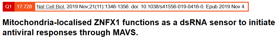 英文題目:Mitochondria-localised ZNFX1 functions as a dsRNA sensor to initiate antiviral responses through MAVS
