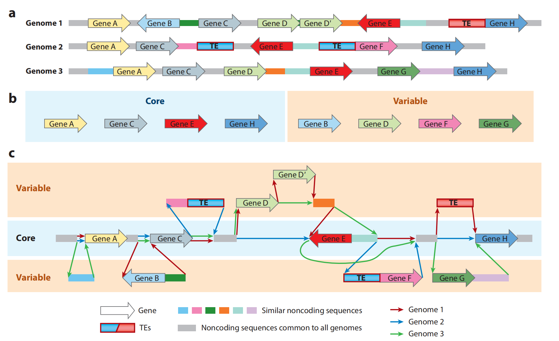 因此對于一個物種來說,如果只使用單一的參考基因組進(jìn)行遺傳馴化變異的研究,可能會丟失掉很多有意義的基因信息。以上種種因素,共同推動了動植物泛基因組的構(gòu)建與研究。