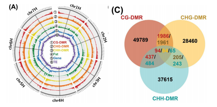 土壤是植物的活基質(zhì),為植物的生長發(fā)育、水、 礦物元素和微生物群提供了必要的物理支持,土壤的物理、化學(xué)和生物特性對植物的生長發(fā)育有很大的影響。因此,通過開發(fā)適合各種類型土壤的更好的作物品種,可以實現(xiàn)土壤資源的可持續(xù)和有效的利用。大麥一直是一種重要的糧食 作物,現(xiàn)在也被用作飲料和飼料的原料生產(chǎn)產(chǎn)品。在大麥馴化過程中,特別是在現(xiàn)代育種和集中化栽培后,栽培大麥的遺傳多樣性顯著降低,成為大麥育種提高生物非生物壓力耐受性和改良的瓶頸,野生大麥已適應(yīng)各種土壤 類型、有效性、水分、溫度和海拔高度不同的環(huán)境,成為改良栽培大麥的理想遺傳資源。已有研究已發(fā)現(xiàn)了多個物種(包括病毒、細(xì)菌、真菌、植物和動物)對微生態(tài)環(huán)境的適應(yīng)性及產(chǎn)生的遺傳變異。當(dāng)植物暴露于環(huán)境脅迫下時,DNA甲基化對轉(zhuǎn)錄組的強(qiáng)調(diào)控已被廣泛報道。植物對環(huán)境脅迫的反應(yīng)是一個復(fù)雜的過程,需要在多組學(xué)水平上進(jìn)行協(xié)調(diào),目前基因組測序、甲基化組測序、轉(zhuǎn)錄組,蛋白質(zhì)組學(xué),和代謝組在這方面都有了成熟的應(yīng)用。水稻、蘋果等物種的非生物脅迫研究表明植物中DNA的甲基化和TE的動員可以影響適應(yīng)性應(yīng)激反應(yīng)和基因組的穩(wěn)定性,因此,破譯小麥等野生品系的DNA甲基組與轉(zhuǎn)錄組和代謝組的相互作用,將有利于耐非生物和生物脅迫新品種的選擇和育種。