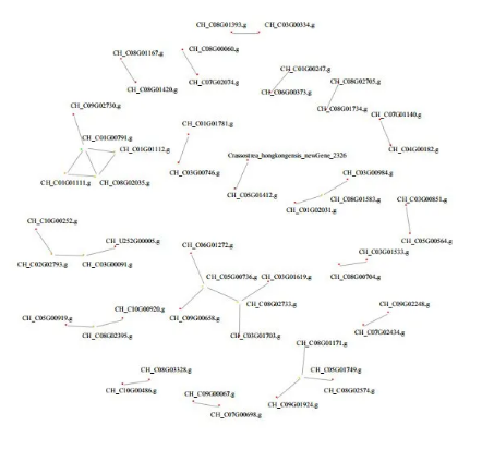主要主要是基STRING數(shù)據(jù)庫(kù)提取目標(biāo)基因集的互作關(guān)系。對(duì)于數(shù)據(jù)庫(kù)中未收錄信息的物種,使用BLAST軟件,將目的基因與數(shù)據(jù)庫(kù)中的蛋白質(zhì)進(jìn)行序列比對(duì),尋找同源蛋白,根據(jù)同源蛋白的互作關(guān)系對(duì)構(gòu)建互作網(wǎng)絡(luò)。構(gòu)建完成的蛋白質(zhì)互作網(wǎng)絡(luò)可導(dǎo)入Cytoscape軟件進(jìn)行可視化。
